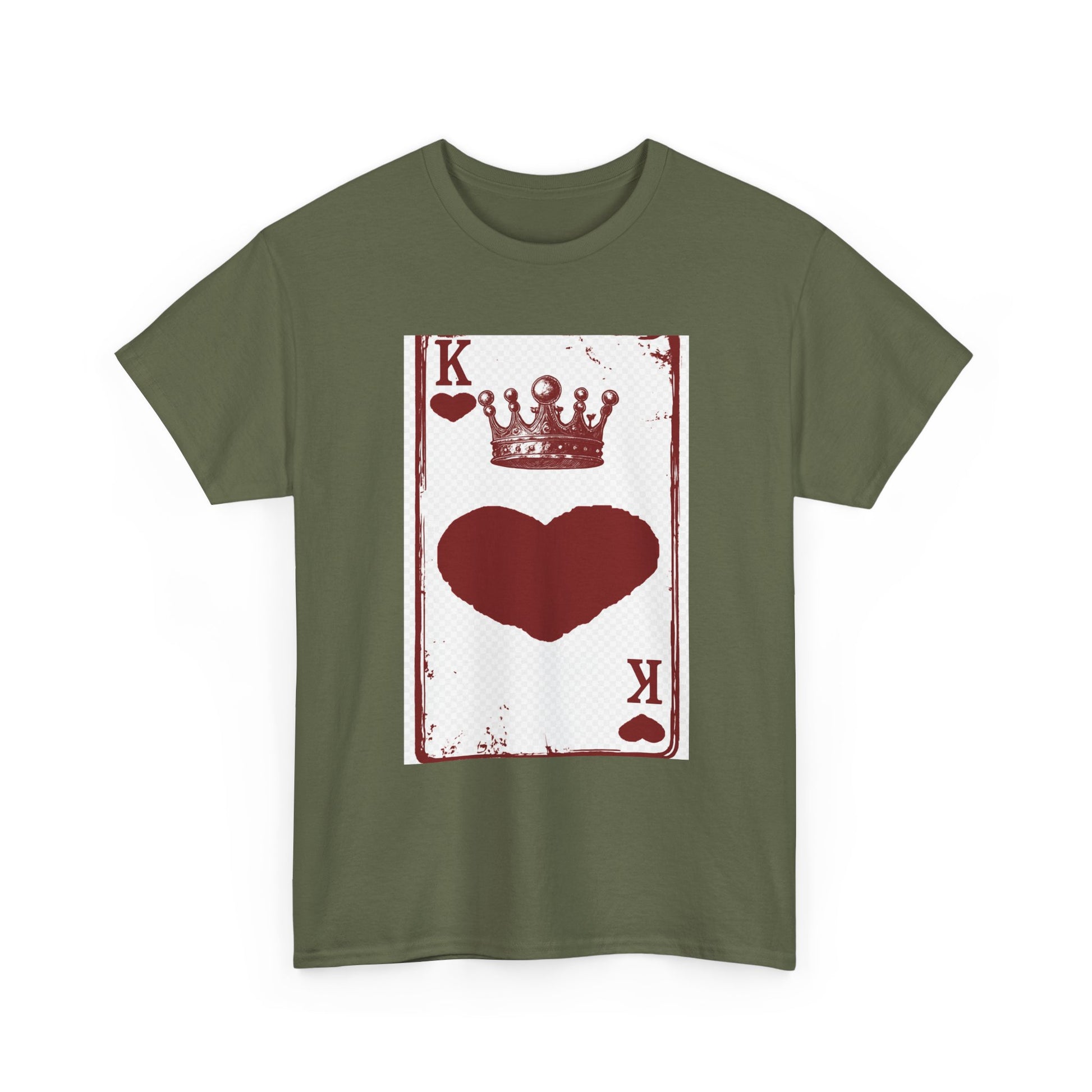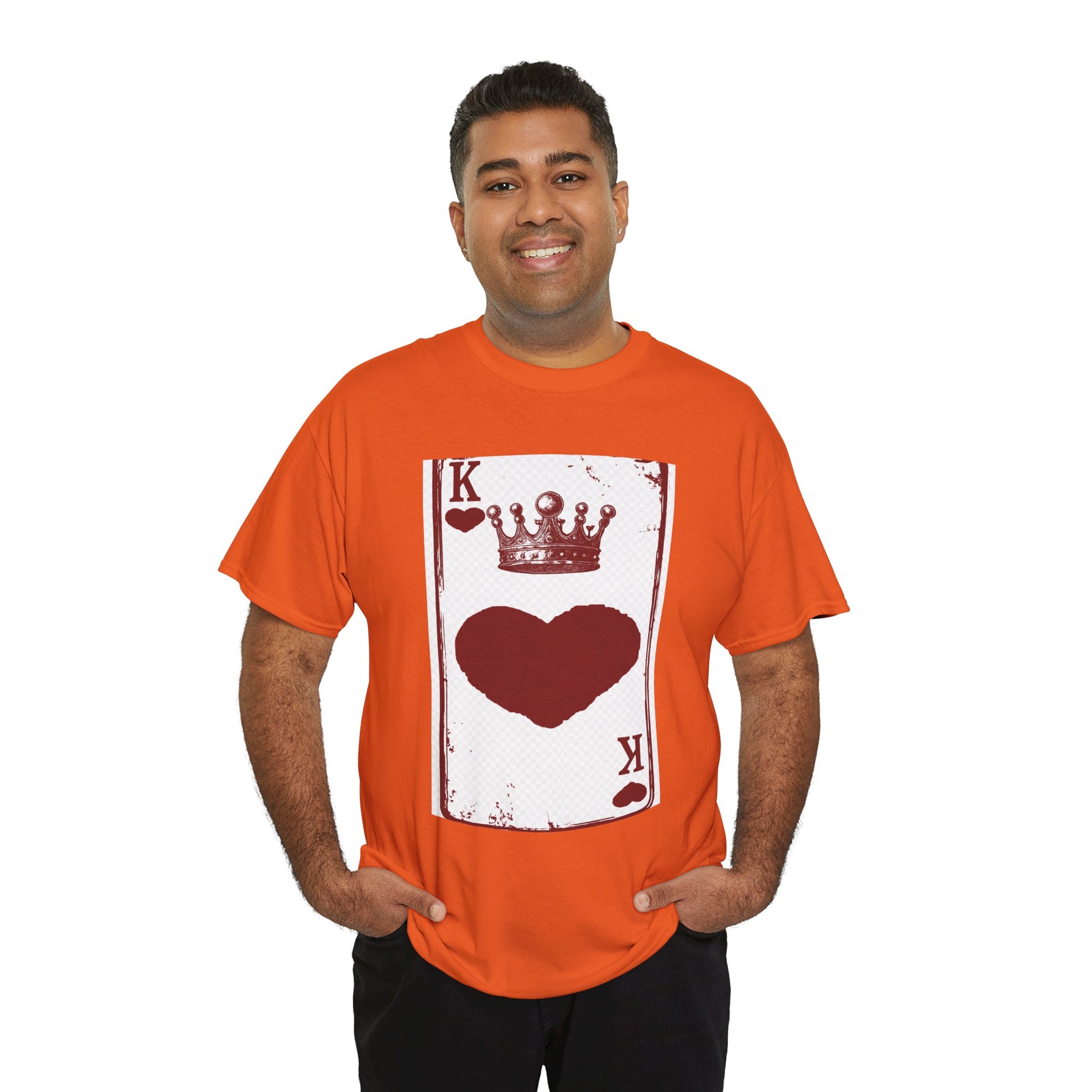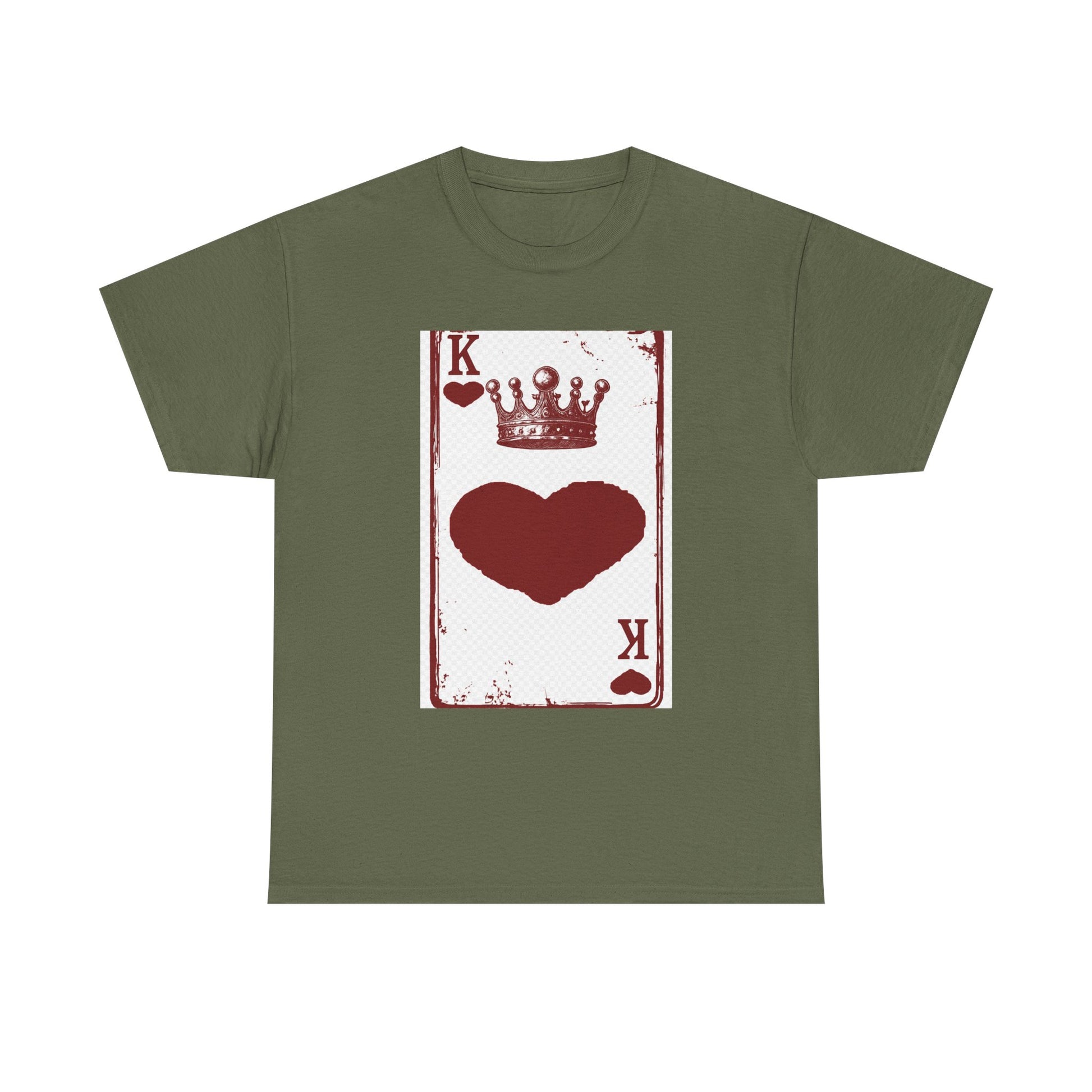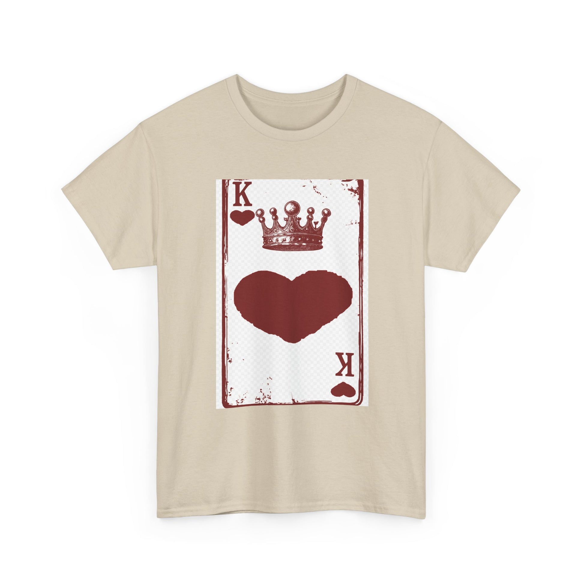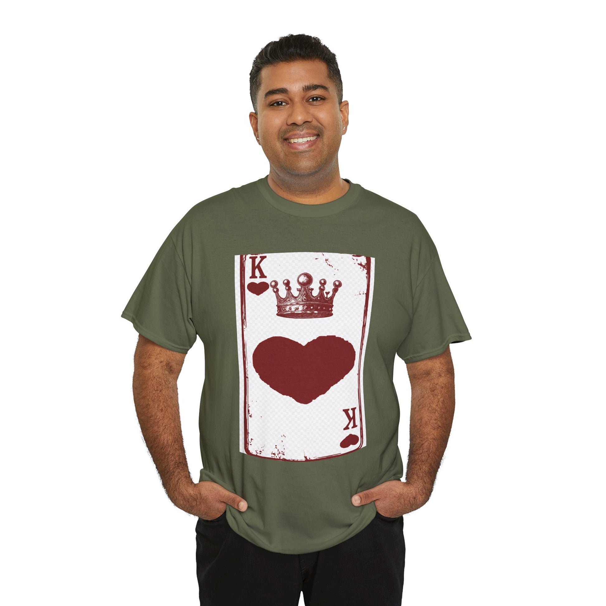 Unisex Heavy Cotton Tee with King of Hearts playing-card design. 100% US cotton, classic fit, tear-away label. Comfortable, durable, and print-ready.