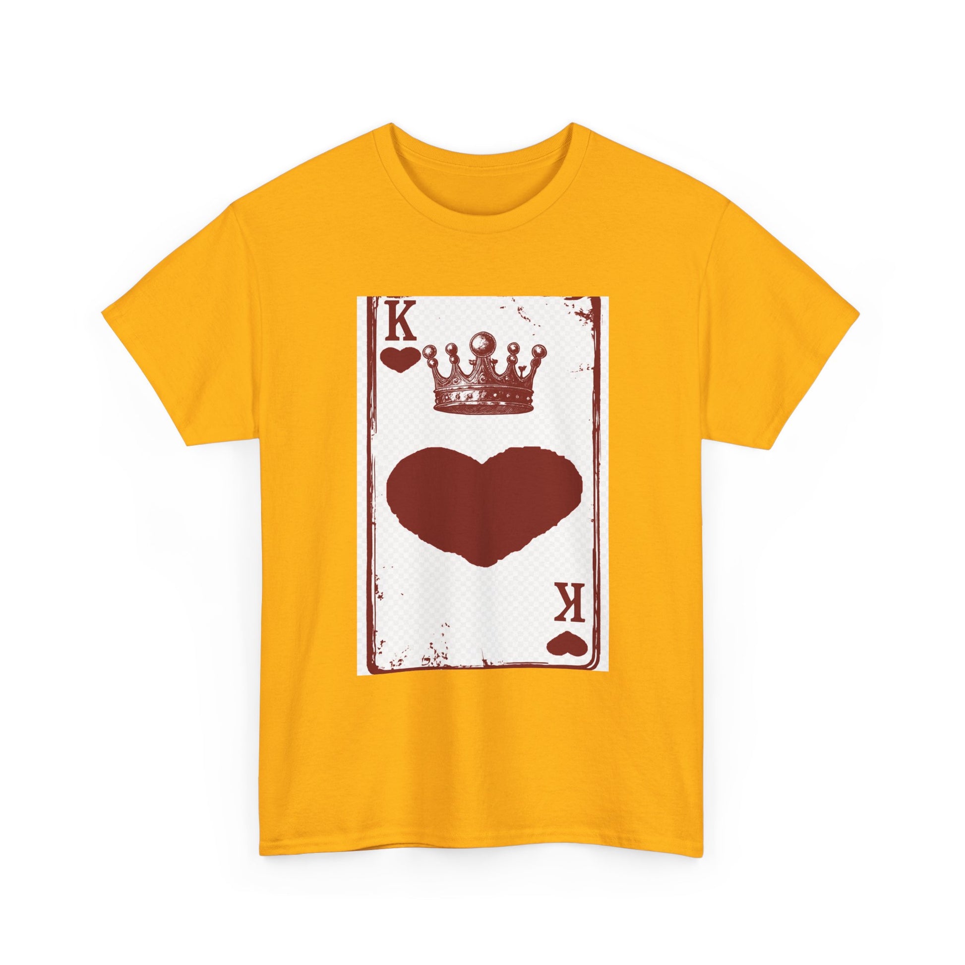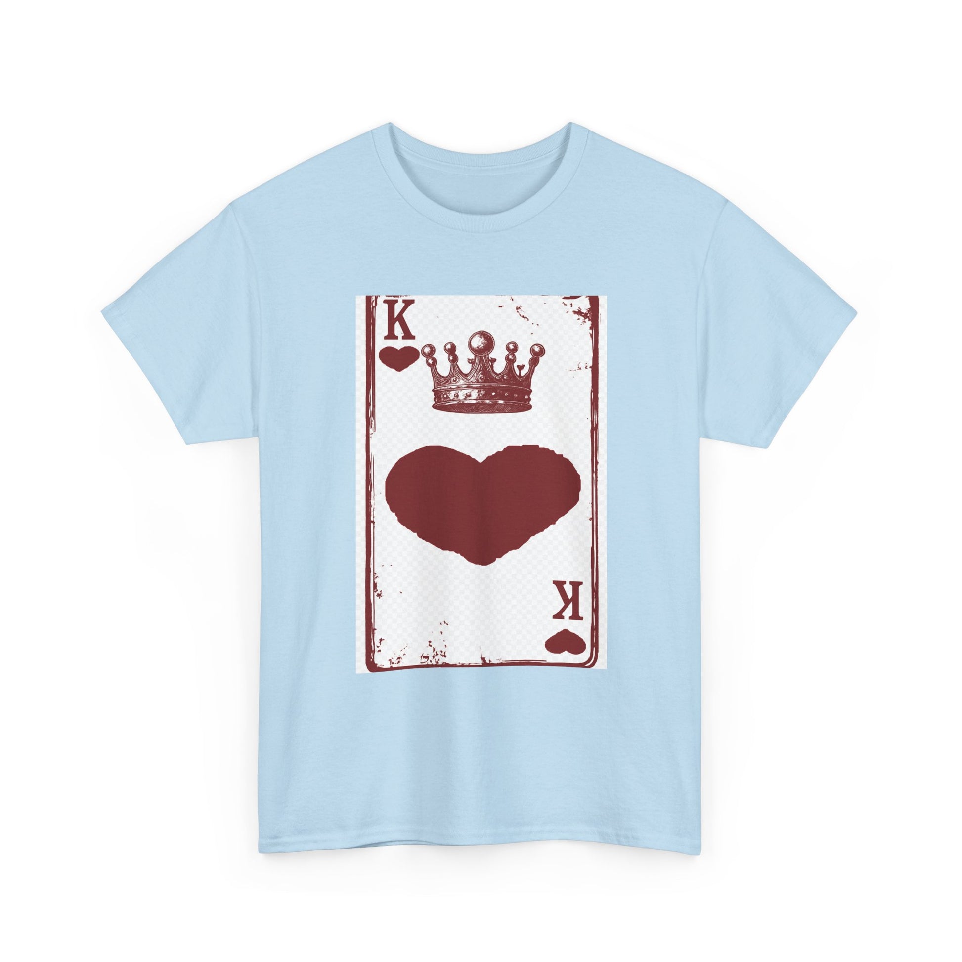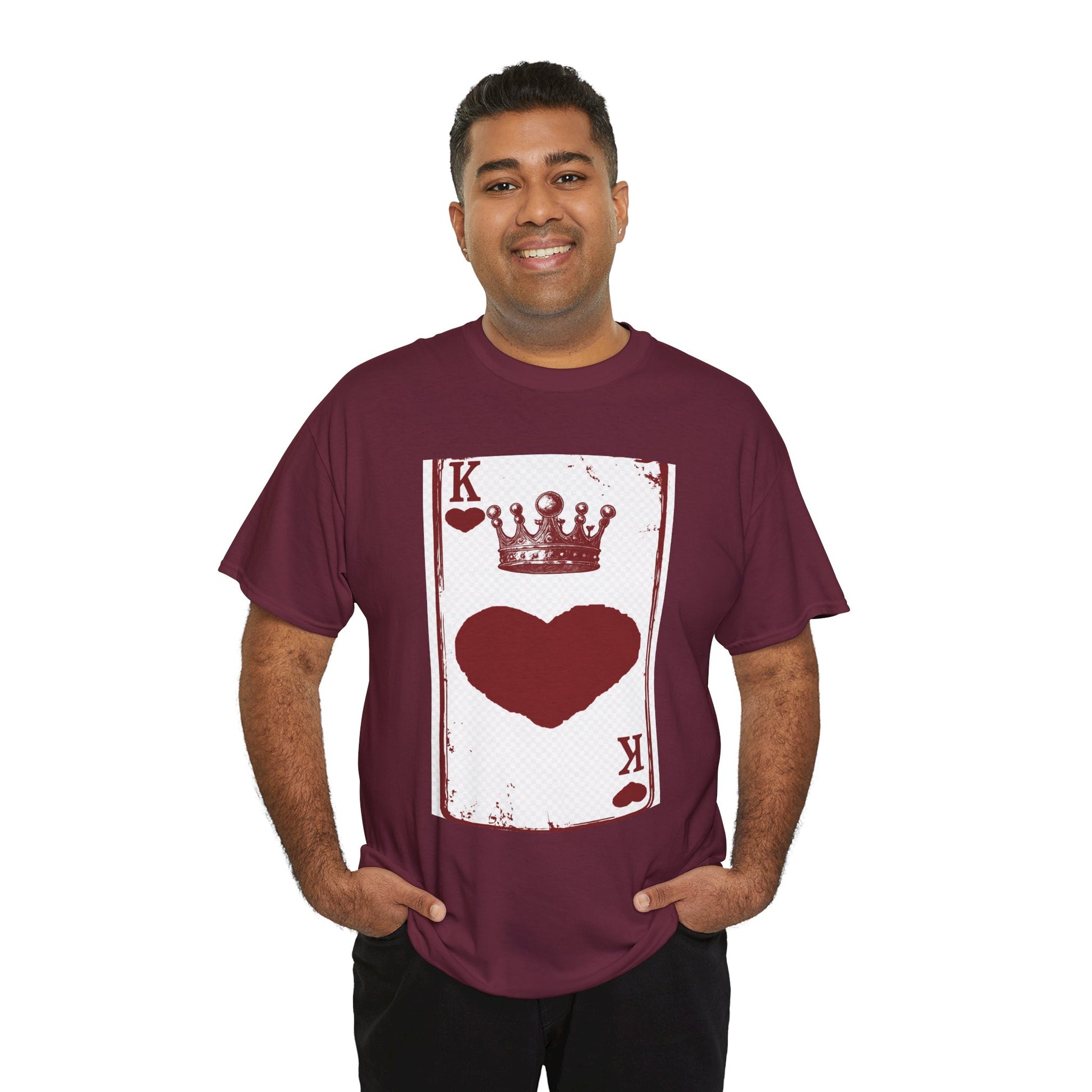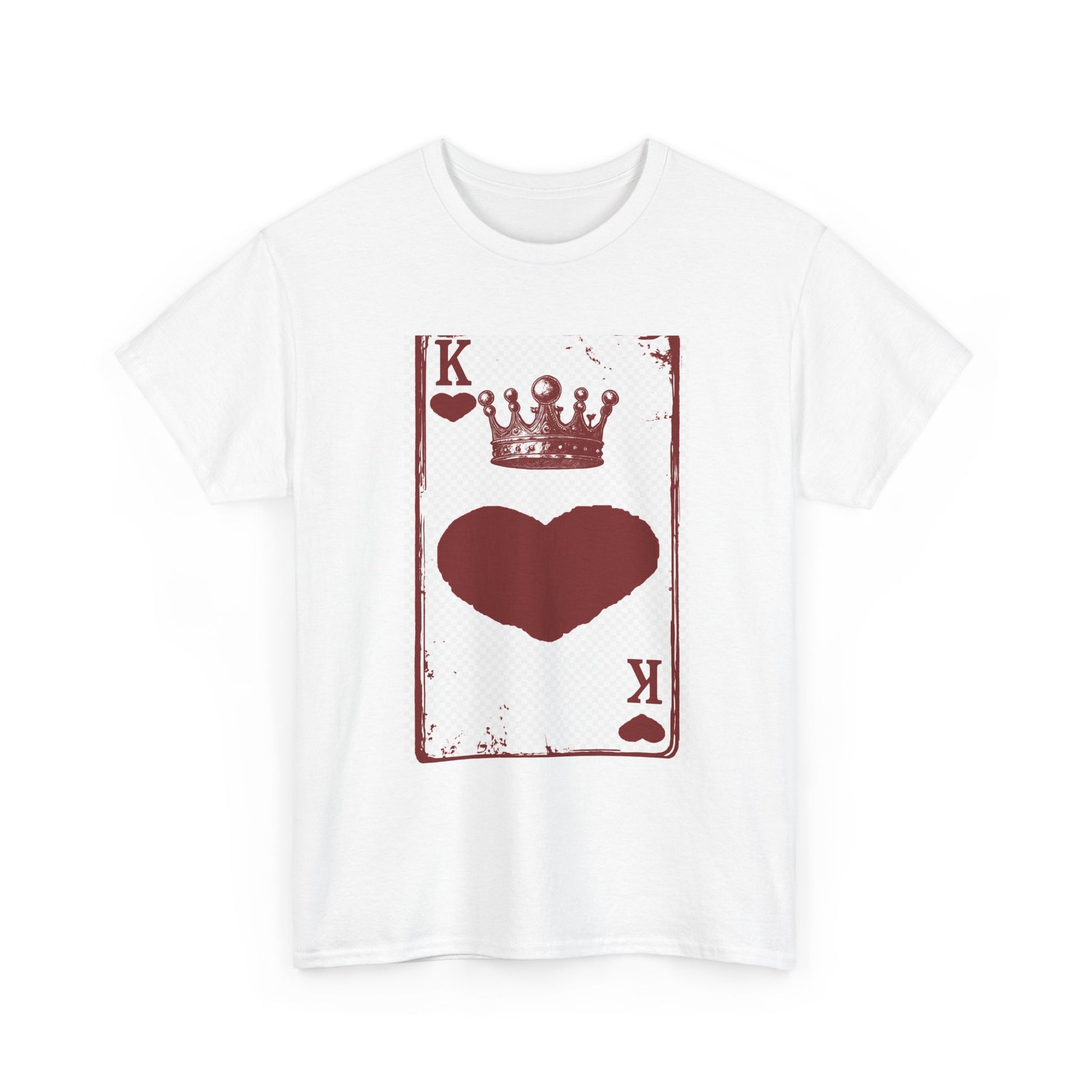Unisex Heavy Cotton Tee with King of Hearts playing-card design. 100% US cotton, classic fit, tear-away label. Comfortable, durable, and print-ready.