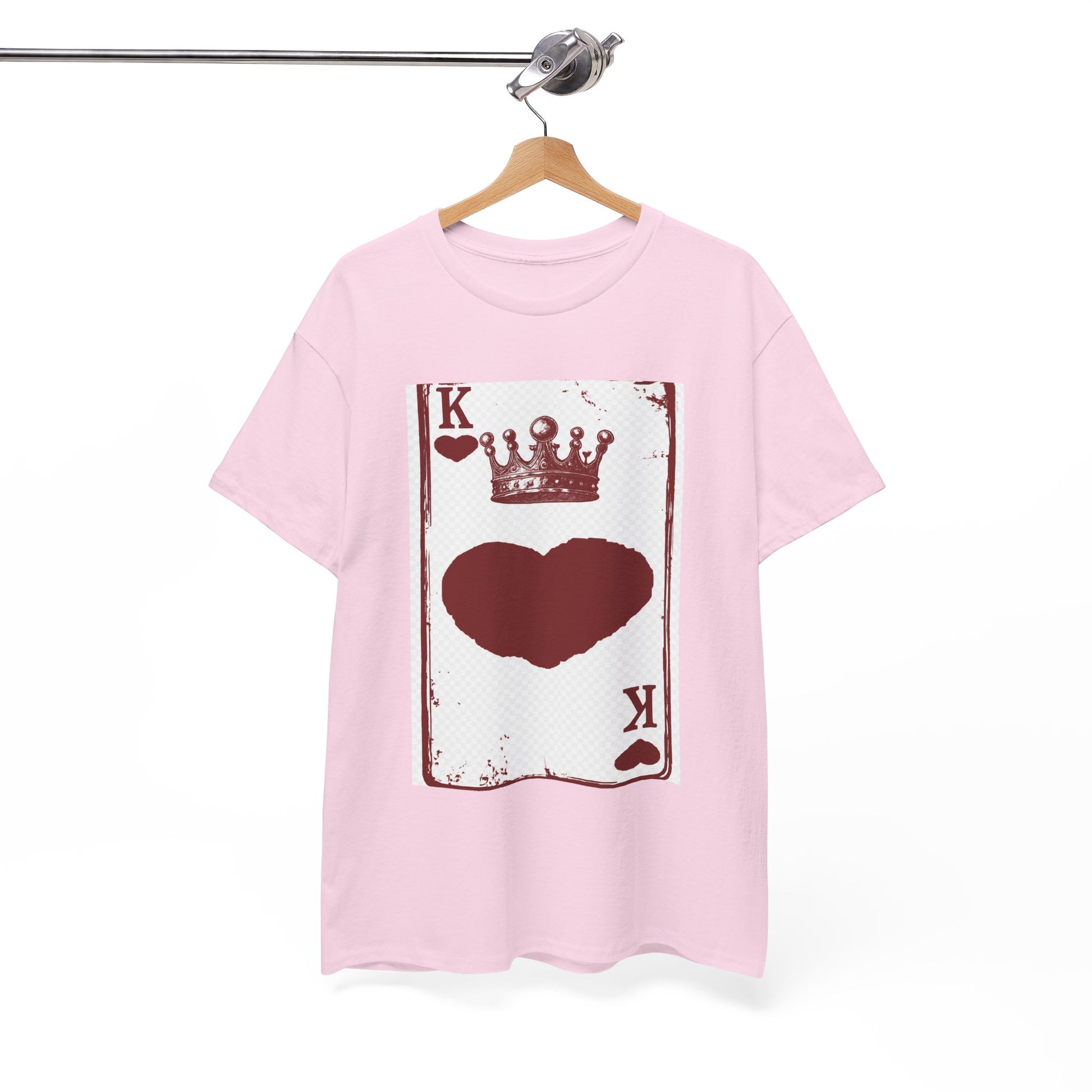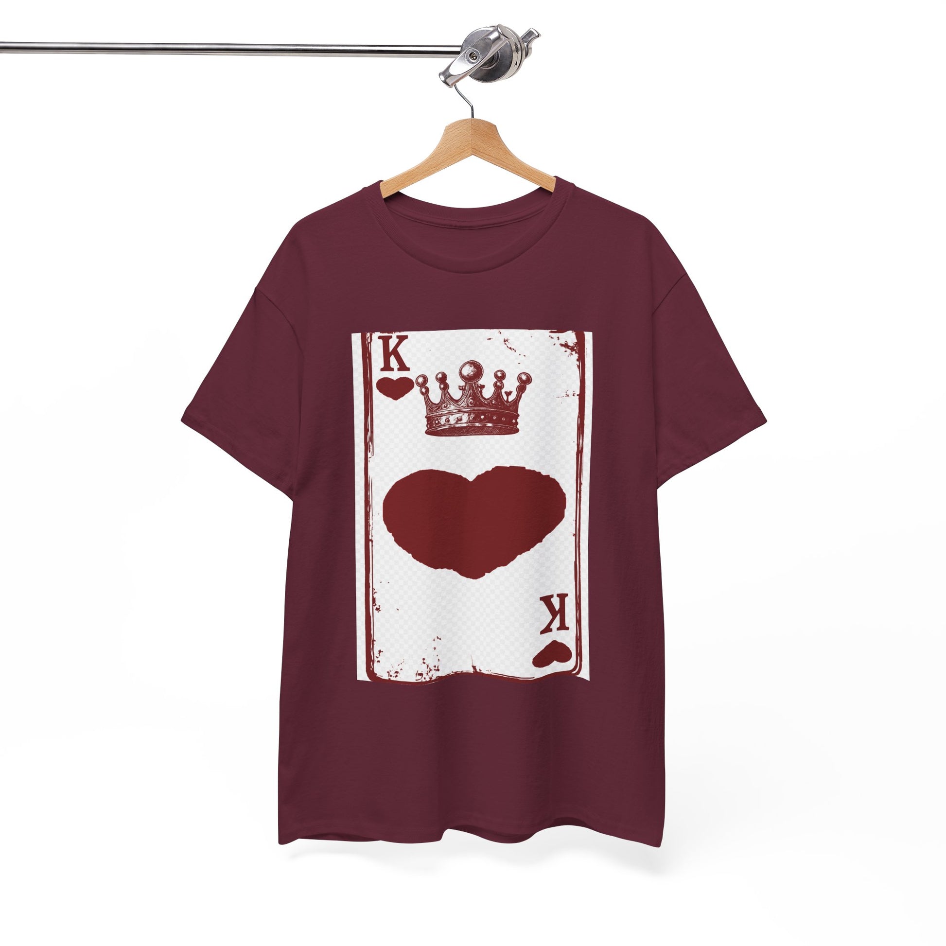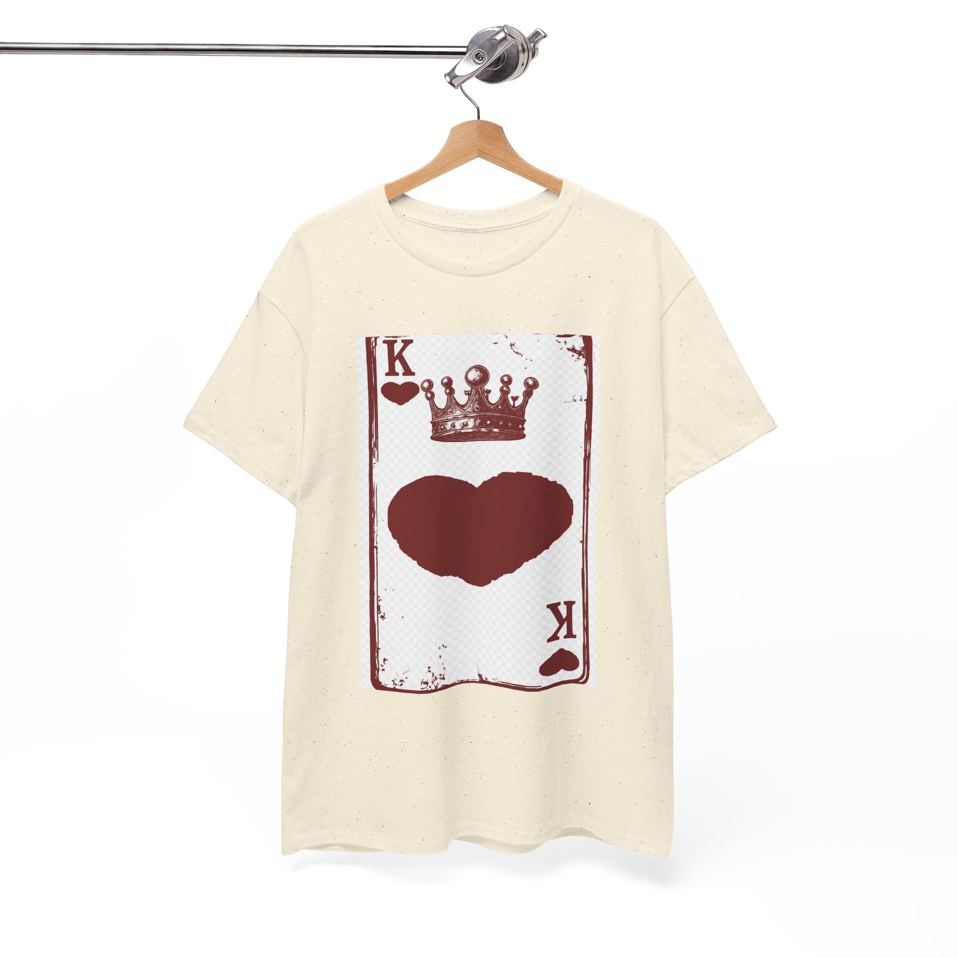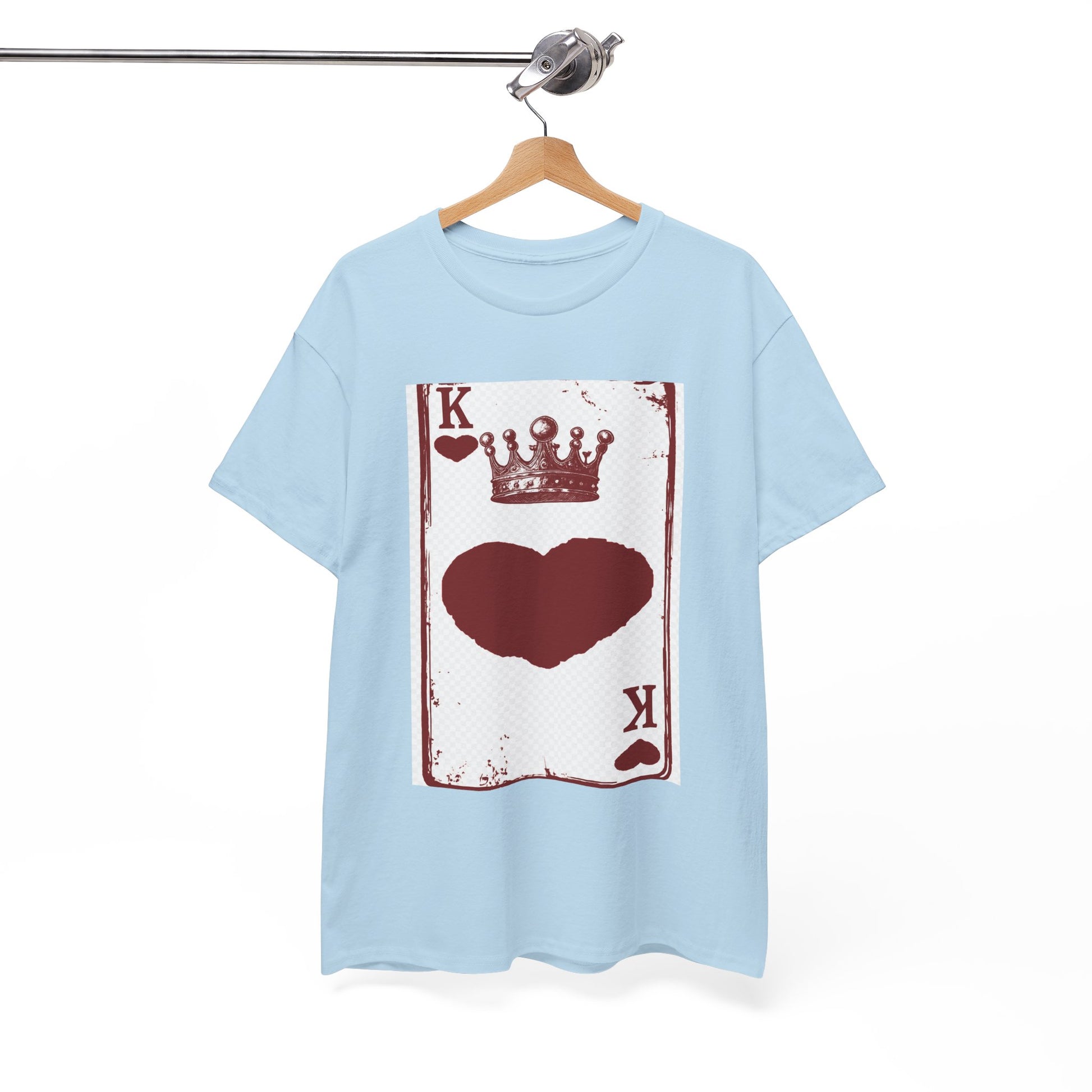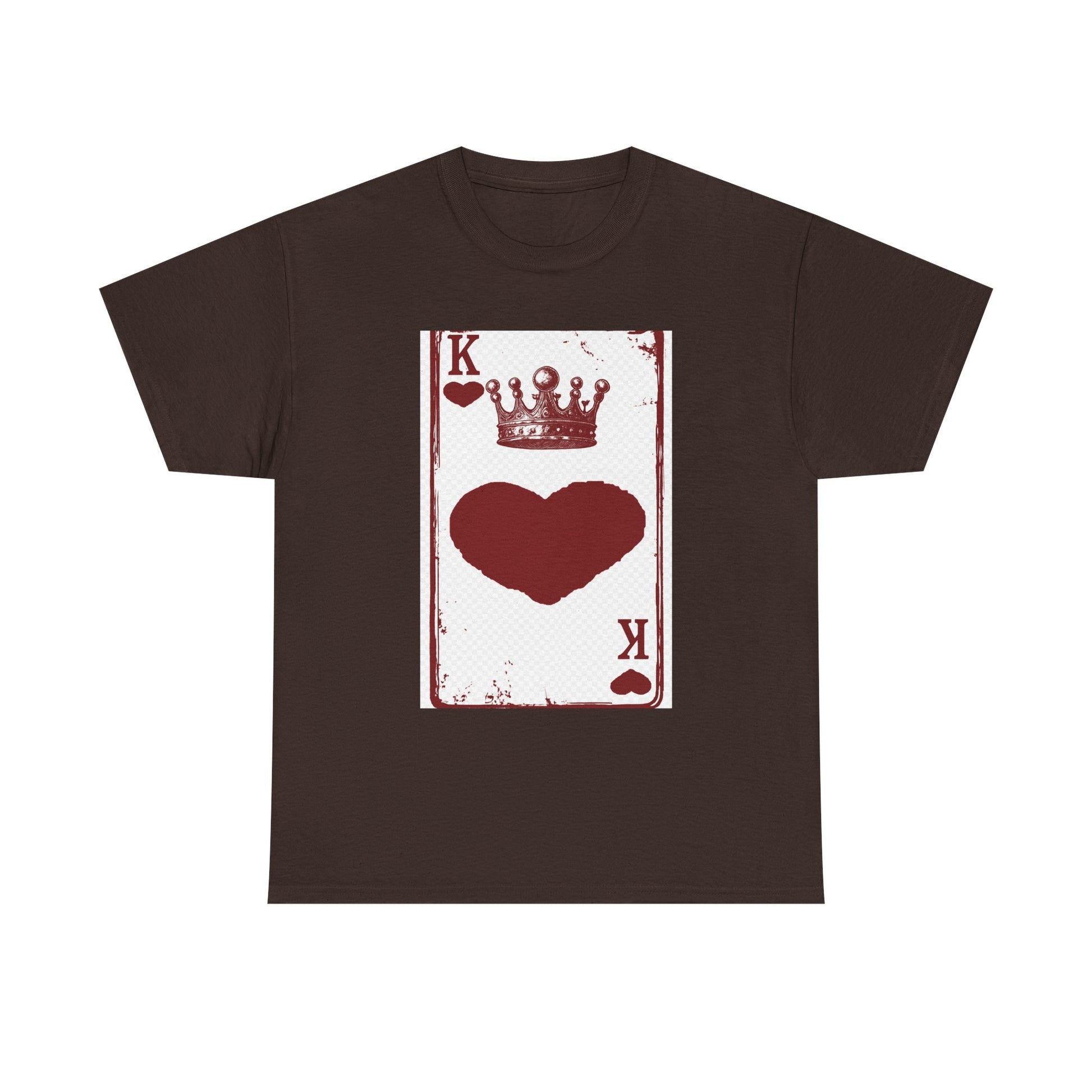Unisex Heavy Cotton Tee with King of Hearts playing-card design. 100% US cotton, classic fit, tear-away label. Comfortable, durable, and print-ready.