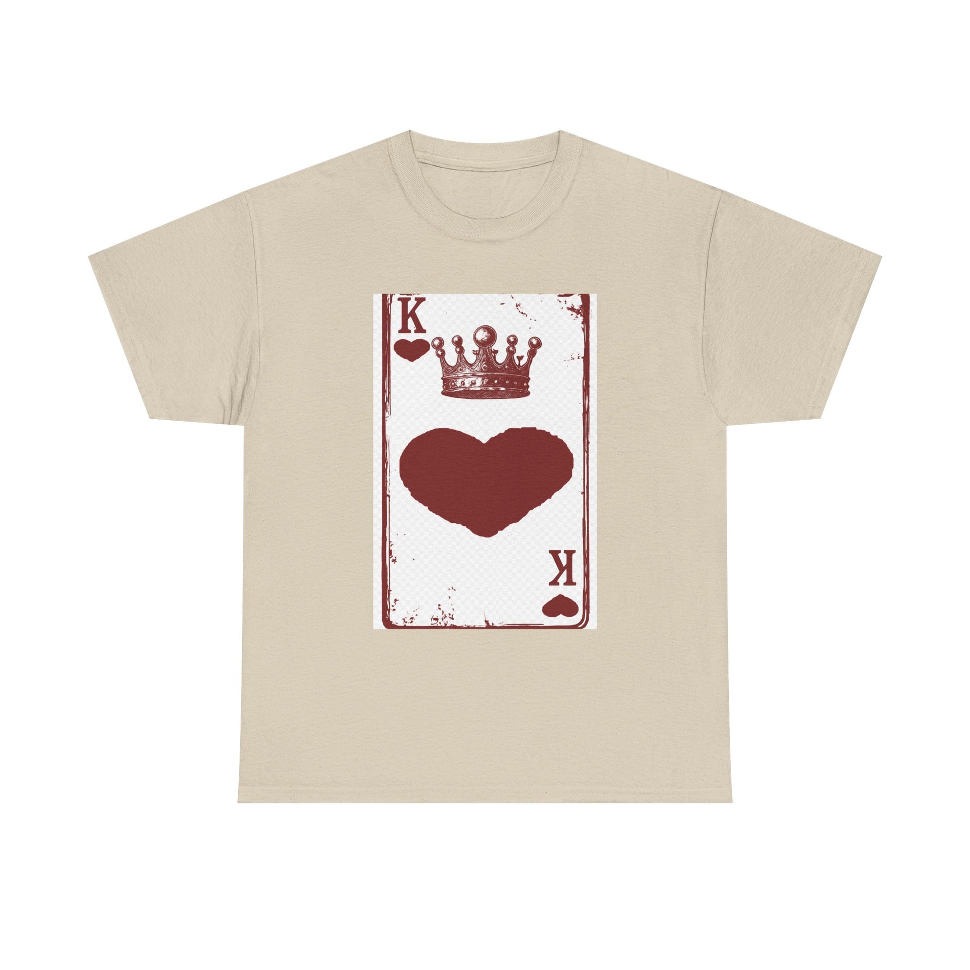Unisex Heavy Cotton Tee with King of Hearts playing-card design. 100% US cotton, classic fit, tear-away label. Comfortable, durable, and print-ready.